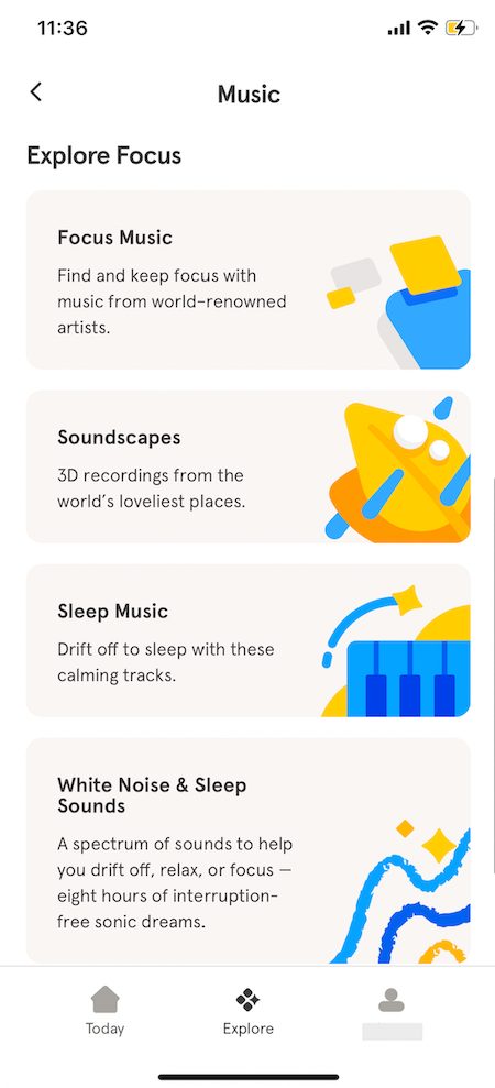 Since mindfulness is a skill that’s best practiced with consistency, our testers appreciate that Headspace’s daily program encourages users to integrate it into their daily routine. The app suggests short exercises, lessons, guided meditations, and physical activities in the morning, afternoon, and evening, and encourages users to incorporate mindfulness practices throughout the day.