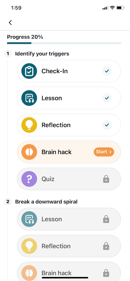 Our testers acknowledged that there is a lot of information included in the learning modules, and that this might be overwhelming for some users, especially since modules aren’t locked to a daily limit like some other platforms we tested. Platforms like Noom Mood offer content that’s limited to 10–20 minutes a day.