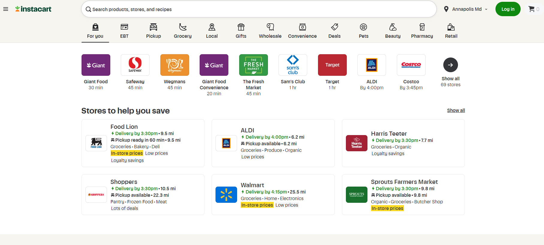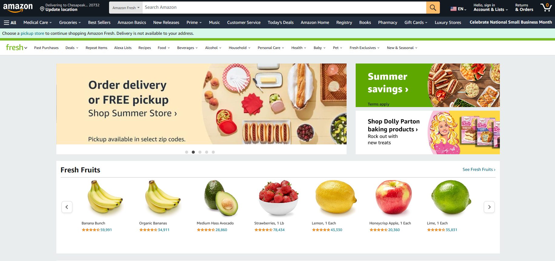 Associated Fees | Flat-rate shipping starts at $5.99 | $6–$15 delivery fees, varies by location; $129/year for free delivery | Free shipping for Prime members who spend over $100 | Yearly plan: $60/year Monthly plan: $12/month | $3.99 delivery fee and service fee |