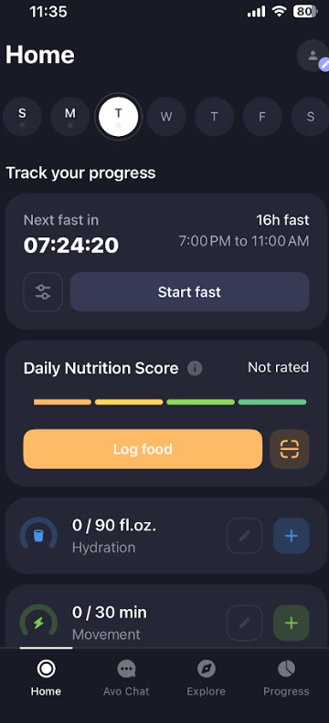 The app allows you to see your fasting “countdown,” which tells you how much time you have until you stop your fast and eat. It also shows progress for the day, which is a helpful reminder to log water intake and eat enough during the non-fasting window. Our tester also appreciates the science-backed nutritional content, lack of strict calorie counting, and reminders to practice mindful eating.