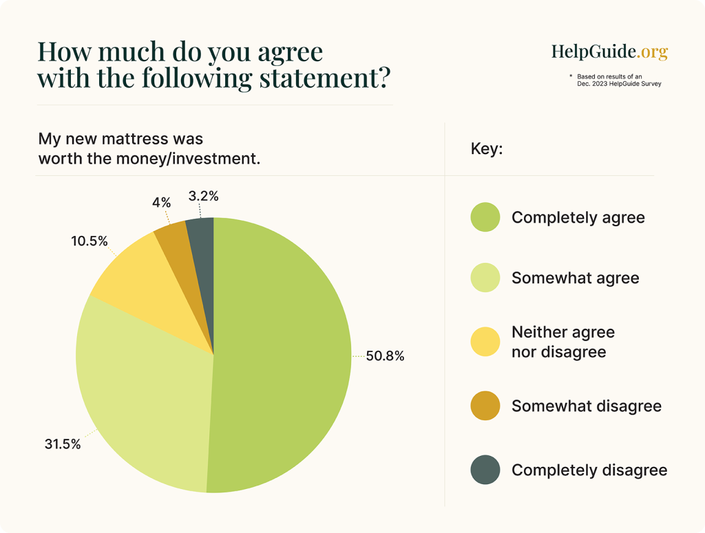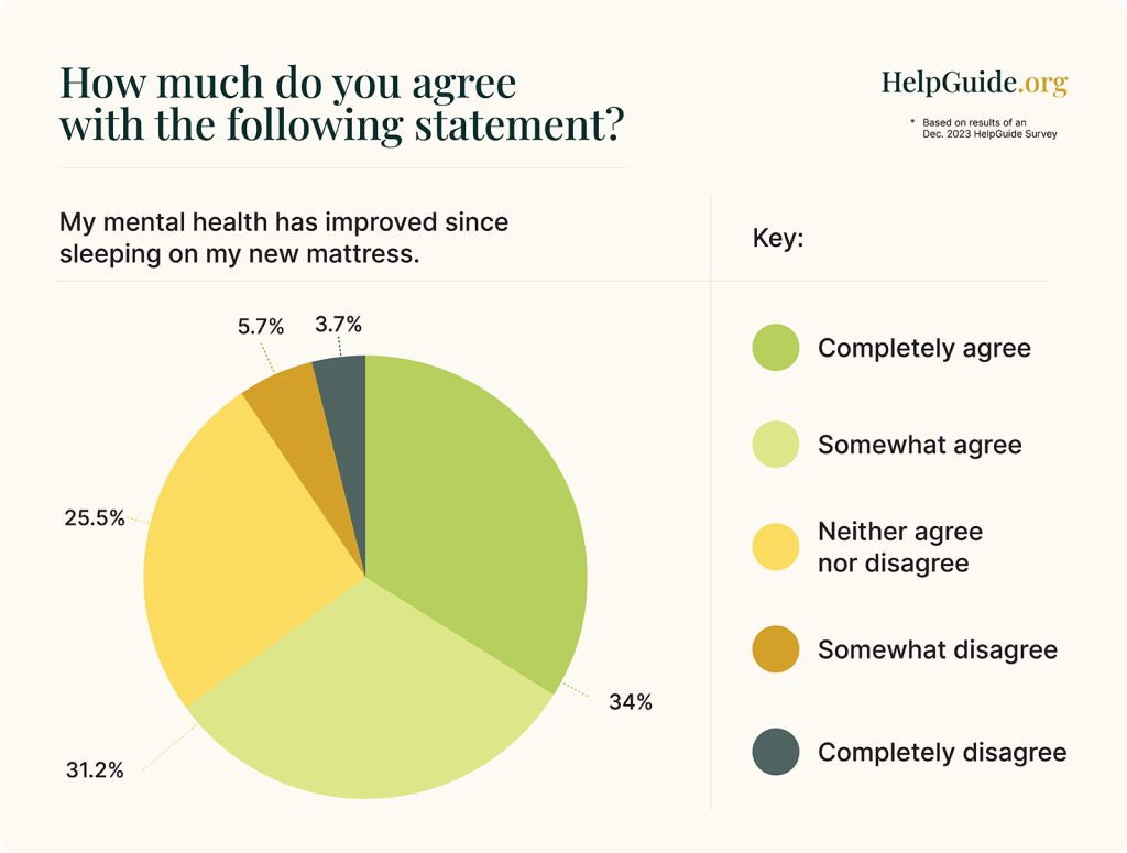 According to our survey, about 80 percent of all respondents said their new mattress helps them sleep better, and 65 percent reported improved mental health.