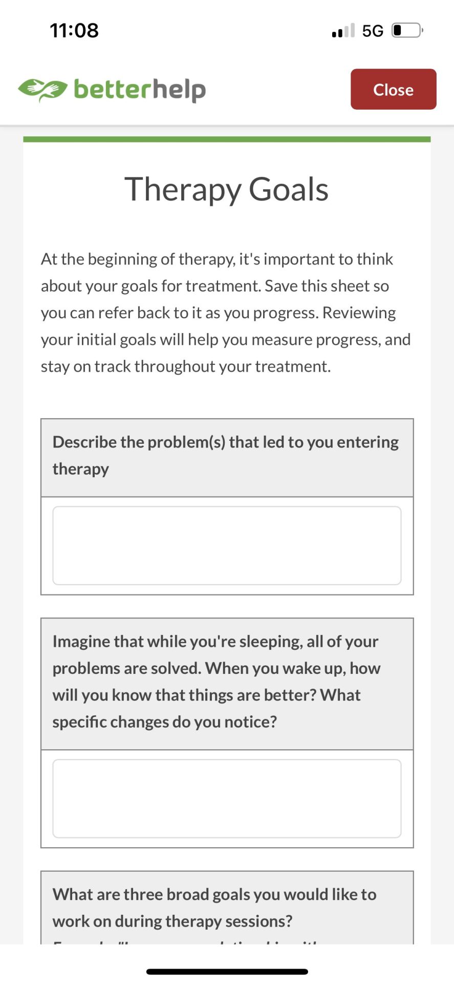 In addition to therapy sessions, our testers also explored BetterHelp’s features that support self-directed wellness. For instance, there are journaling tools for recording thoughts and experiences, such as the one pictured below. During our tester’s therapy session, the therapist recommended worksheets specific to their problems, which they found helpful.