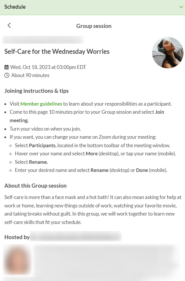 Our tester used the group sessions and reported that her experience was great. She found the group session surprisingly helpful.