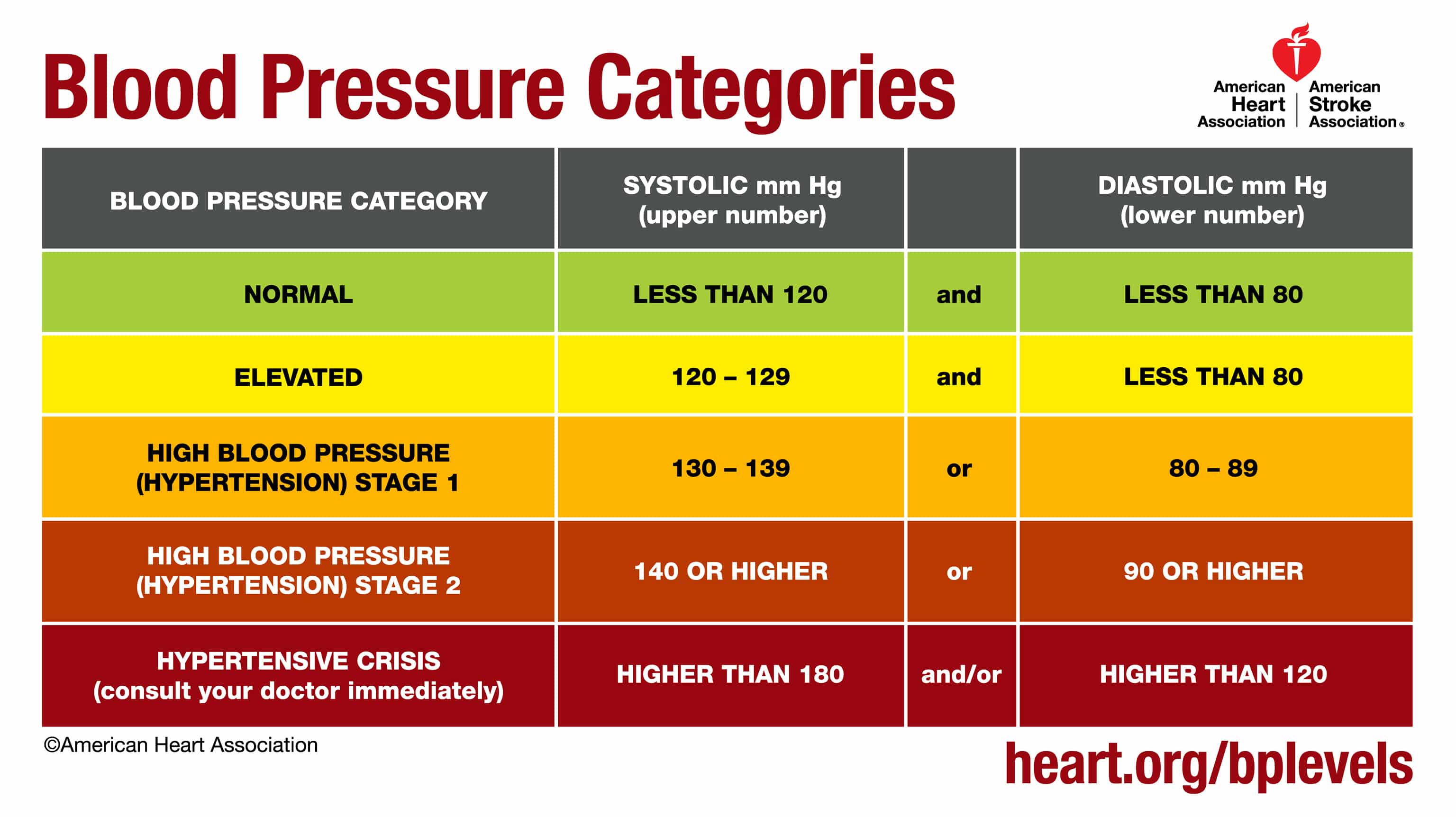 The systolic number is recorded first, with an ideal blood pressure reading being below 120/80 (expressed as “120 over 80”). The American Heart Association and American College of Cardiology define high blood pressure, or hypertension, as 130/80 or above (a systolic reading of at least 130 mm Hg or a diastolic reading of at least 80 mm Hg, or both).