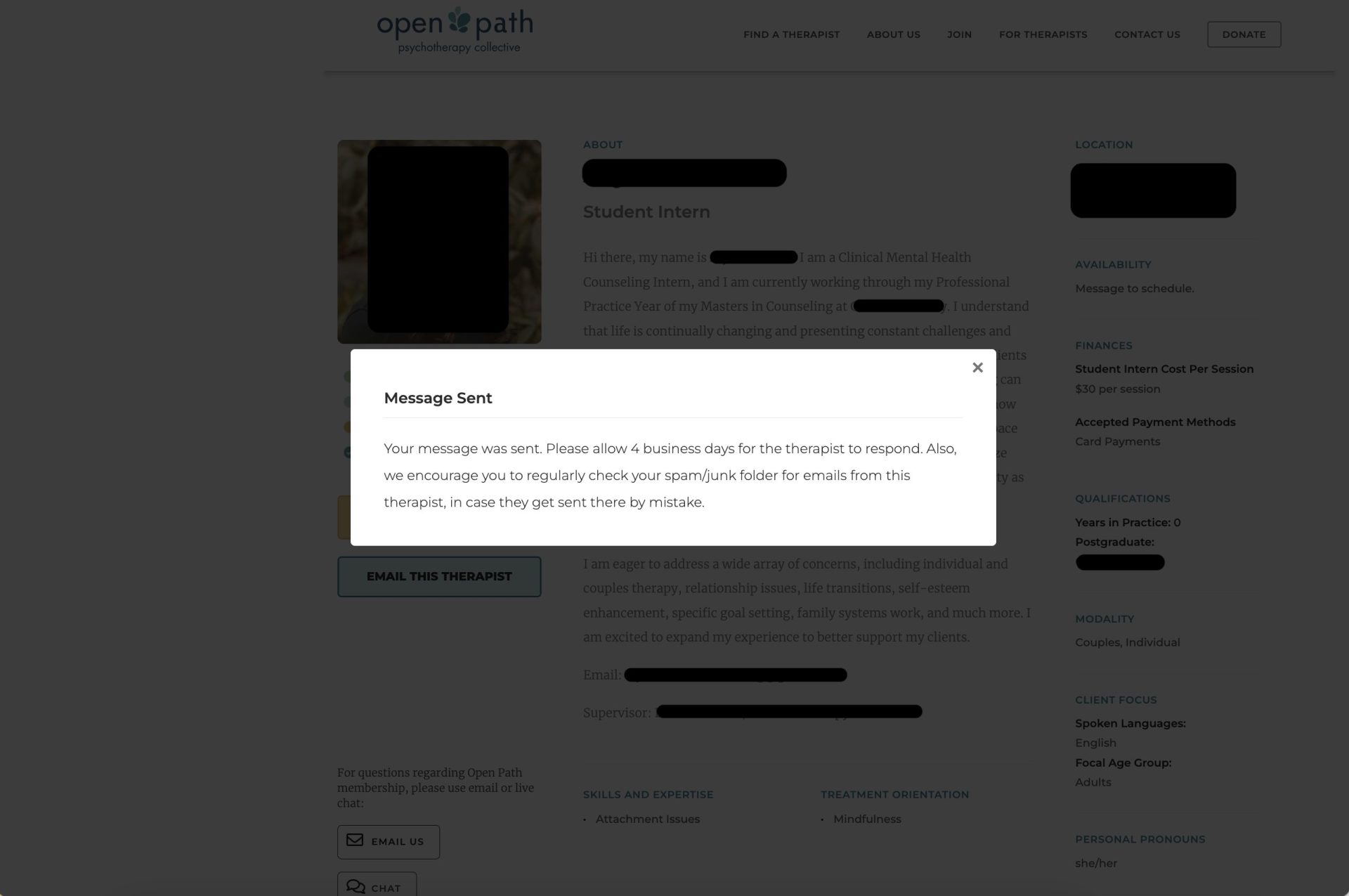 “I really appreciate that Open Path has long, thorough profiles where I can learn as much about the providers as possible and reach out to ask questions before I sign up.”