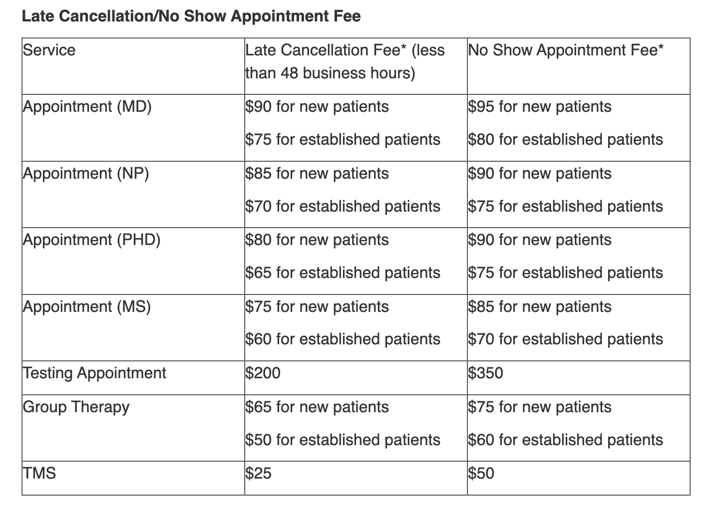 LifeStance also charges a fee for prescriptions refilled outside of an appointment; $25 for regular refills and $45 for controlled substance refills.