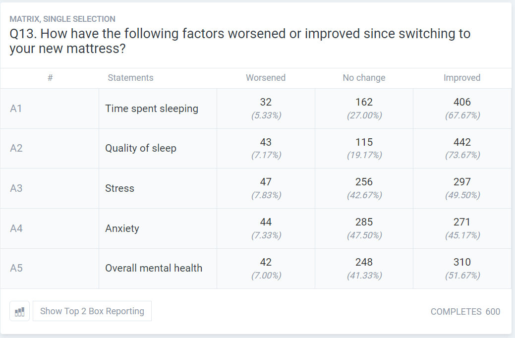 We surveyed 600 people who bought a mattress in the last three years to understand what impact their mattress had on their health and to determine what features or services are most valued.
