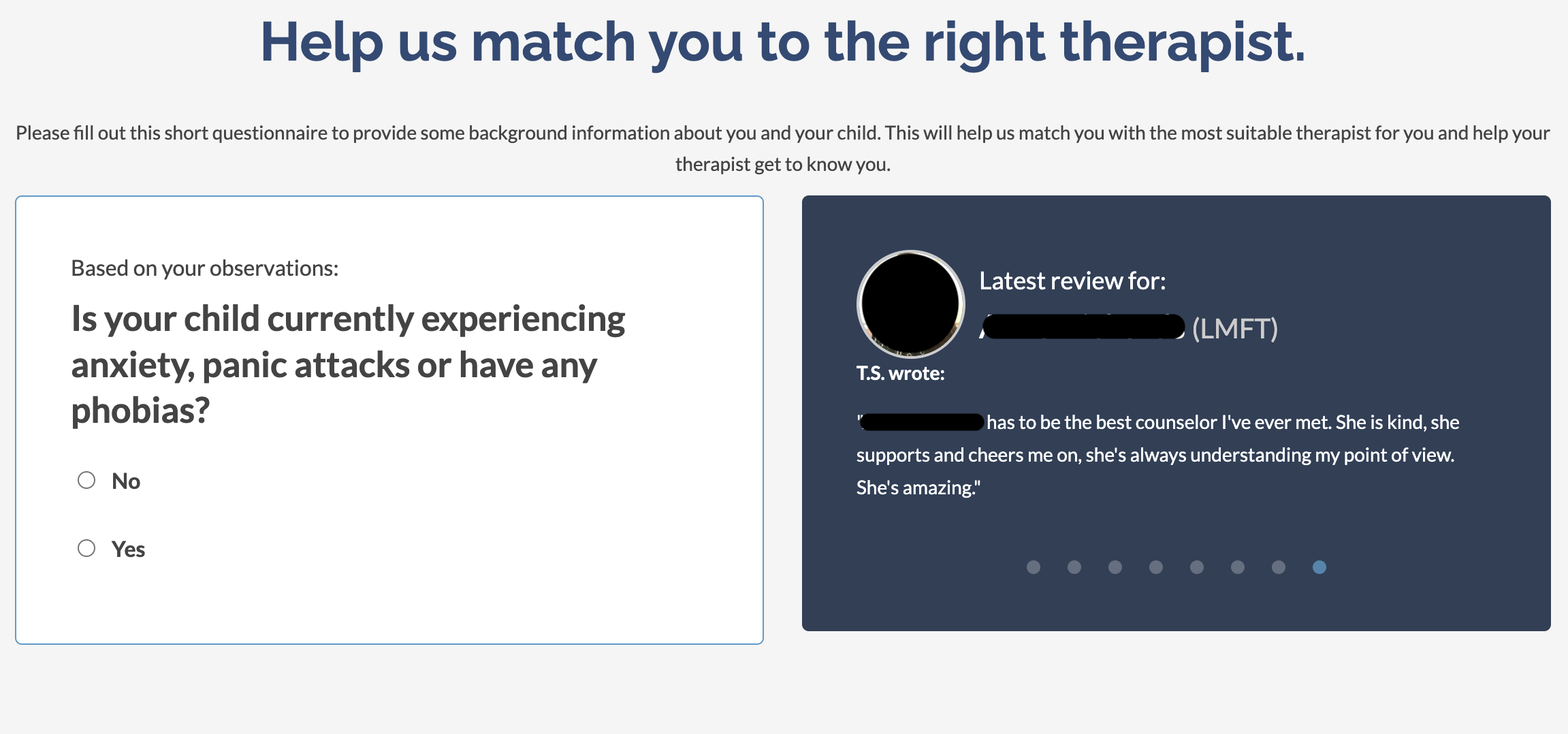 “It’s pretty easy to find appointment times for each therapist and to book a time slot. We did notice that the therapists we worked with only showed availability two weeks out, and we would have liked the option to book a full month of appointments at one time.”